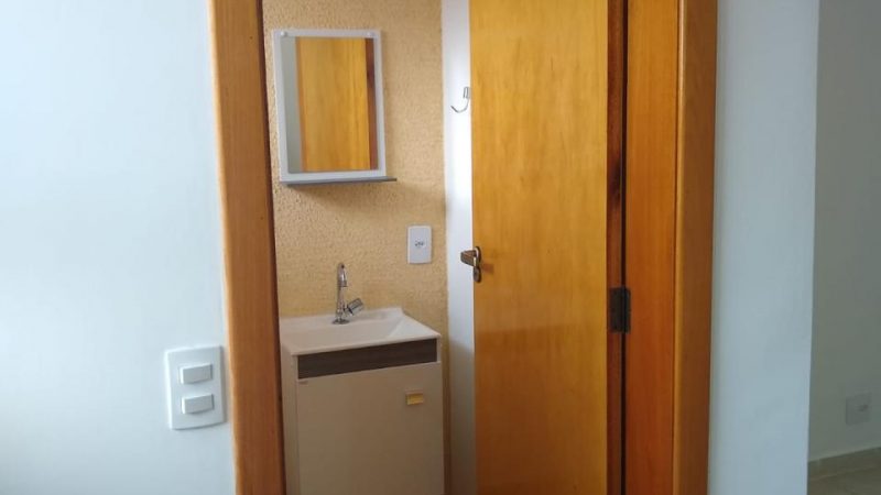 Um bom sobrado com 4 comodos sendo 2 suites com varanda e banheiro social, sala cozinha quintal uma vaga de garagem .